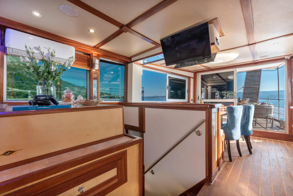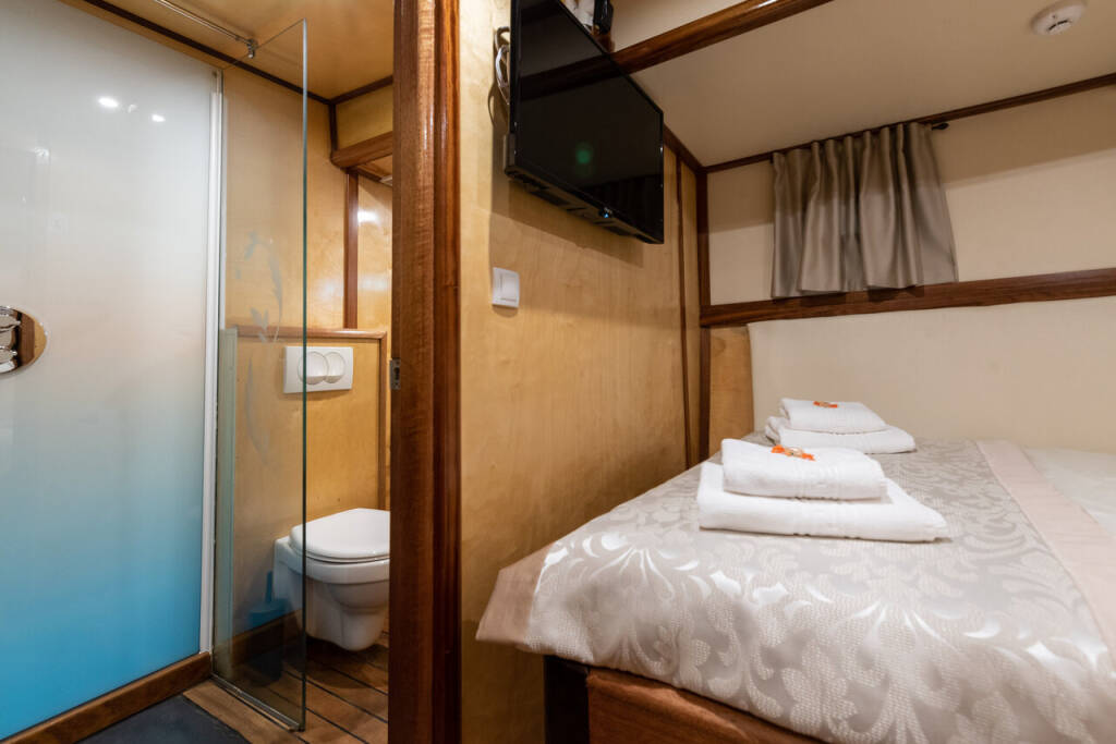 Four beautifully appointed, air-conditioned cabins offering refined privacy and restful nights at sea.