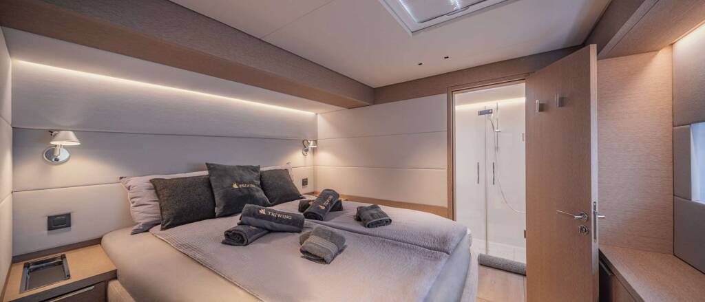 With her panoramic windows, expansive decks, and seamless indoor–outdoor living spaces, “TriWing Endor” invites guests to enjoy the Adriatic in complete luxury. Every detail—from the teak flybridge and light-filled salon to the refined ensuite cabins—reflects innovation, style, and comfort.