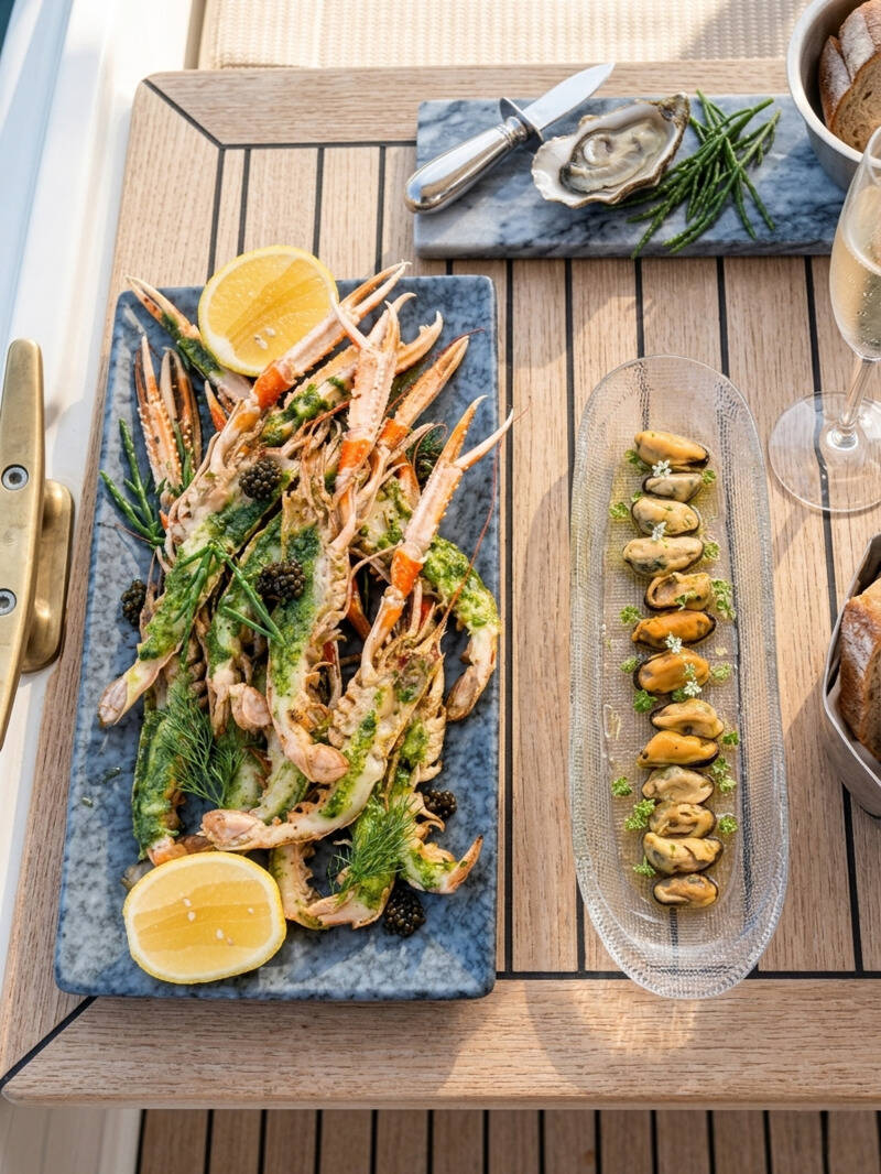 • 3 crew members (Captain, stewardess, chef) • WATER TOYS & equipment: tender: Highfield Classic 460 with rollbar for waterski and 60 hp Honda motor, 2 x Stand-up paddleboards, Snorkeling equipment, 2 x Porsche Sea bob, Wakeboard, Waterski, Kayak for 2 persons, Donut, eFoil, Snorkeling gear, Fishing gear, XXL Aquatic Area• Final cleaning, bedding, towels, beach towels & toiletry • WI-FI (1 TB weekly), STARLINK INTERNET • The Finest coffee types, selection of the best Croatian local products, kitchen and cleaning supplies • Daily preparation of breakfast, lunch and dinner • 13% VAT