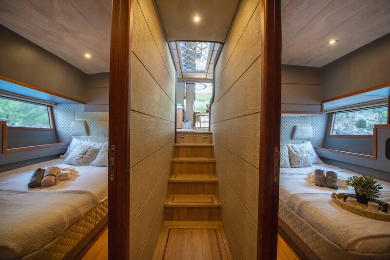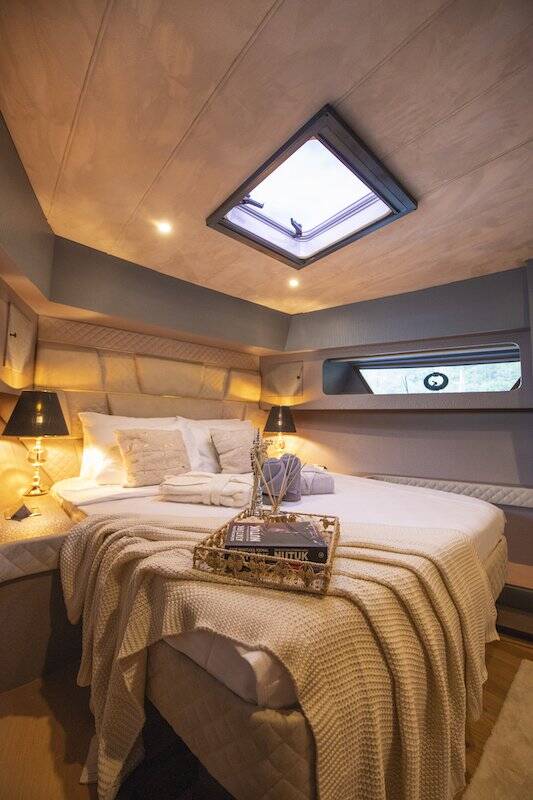This yacht Golden blue (Motor Yacht - year 2023) lies in the Fethiye, Ece Saray Marina Resort, Aegean, Turkey. It has 3 cabins, accommodate 6 people and has 2 toilets.