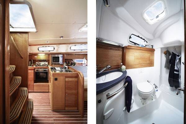 Maverick is designed for smooth handling and comfort on deck. Her roller furling main and genoa, along with control lines led aft to the cockpit, make her easy to sail short-handed. The genoa winches have been thoughtfully placed aft for convenient trimming from the helm or by your crew.