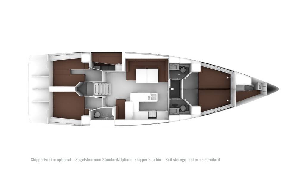 This yacht Bavaria Cruiser 56 (Sailboat - year 2015) lies in the Palma de Mallorca, Marina Naviera Balear, Balearic Islands, Spain. It has 5 + 1 cabins, accommodate 12 people and has 3 + 1 toilets.