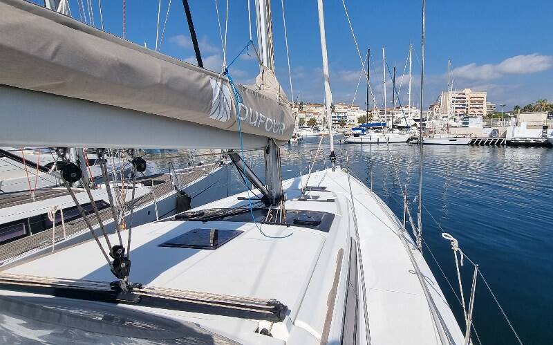 This yacht Dufour 430 (Sailboat - year 2023) lies in the Golf Juan, Provence-Alpes-Côte d'Azur, France. It has 3 cabins, accommodate 8 people and has 2 toilets.