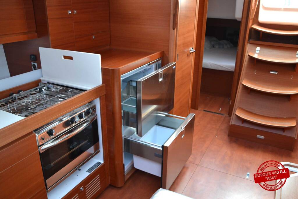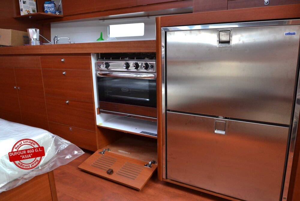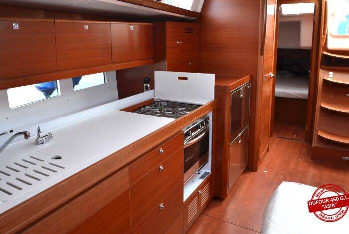 This yacht Dufour 460 GL (Sailboat - year 2016) lies in the Marina di Scarlino - Follonica, Tuscany, Italy. It has 4 cabins, accommodate 8 + 2 people and has 4 toilets.