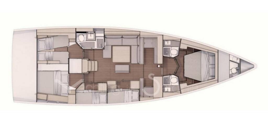 This yacht Dufour 530 (Sailboat - year 2022) lies in the Marina di Portisco, Sardinia, Italy. It has 5 + 1 cabins, accommodate 10 + 1 people and has 3 + 1 toilets.