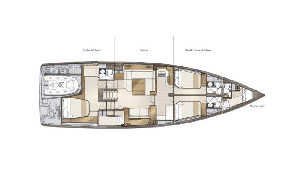 This yacht Jeanneau 60 (Sailboat - year 2023) lies in the Athens, Alimos marina, Athens area/Saronic/Peloponese, Greece. It has 4 + 1 cabins, accommodate 12 people and has 3 + 1 toilets.