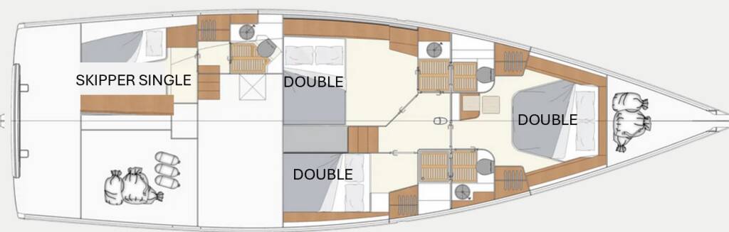 This yacht Moody 54 DS (Sailboat - year 2022) lies in the Corfu, Gouvia Marina, Ionian Islands, Greece. It has 3 + 1 cabins, accommodate 6 + 1 people and has 2 + 1 toilets.