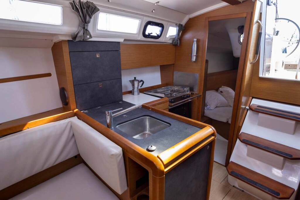 This yacht Sun Odyssey 349 (Sailboat - year 2019) lies in the Golfo Aranci Marina Dell’Isola, Sardinia, Italy. It has 2 cabins, accommodate 5 people and has 1 toilets.