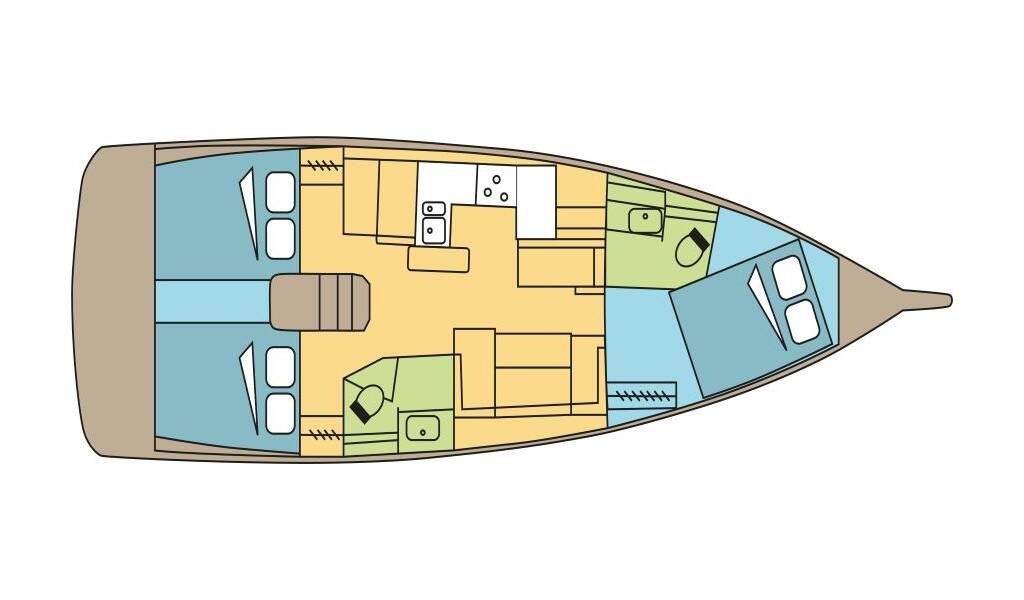 This yacht Sun Odyssey 410 (Sailboat - year 2024) lies in the Cote D'Azur, Port Pin Rolland, Provence-Alpes-Côte d'Azur, France. It has 3 cabins, accommodate 8 people and has 2 toilets.