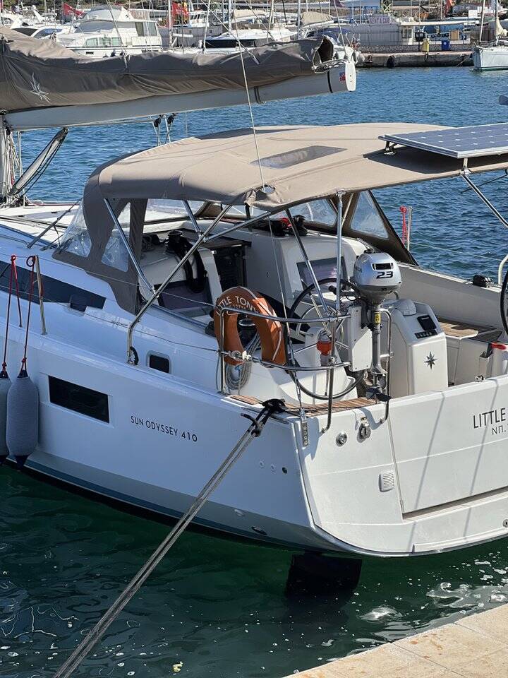 This yacht Sun Odyssey 410 (Sailboat - year 2021) lies in the Athens, Alimos marina, Athens area/Saronic/Peloponese, Greece. It has 3 cabins, accommodate 6 + 2 people and has 2 toilets.