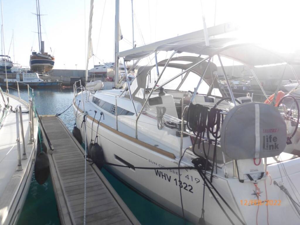 This yacht Sun Odyssey 419 (Sailboat - year 2019) lies in the Palma de Mallorca, La Lonja, Balearic Islands, Spain. It has 3 cabins, accommodate 6 people and has 2 toilets.