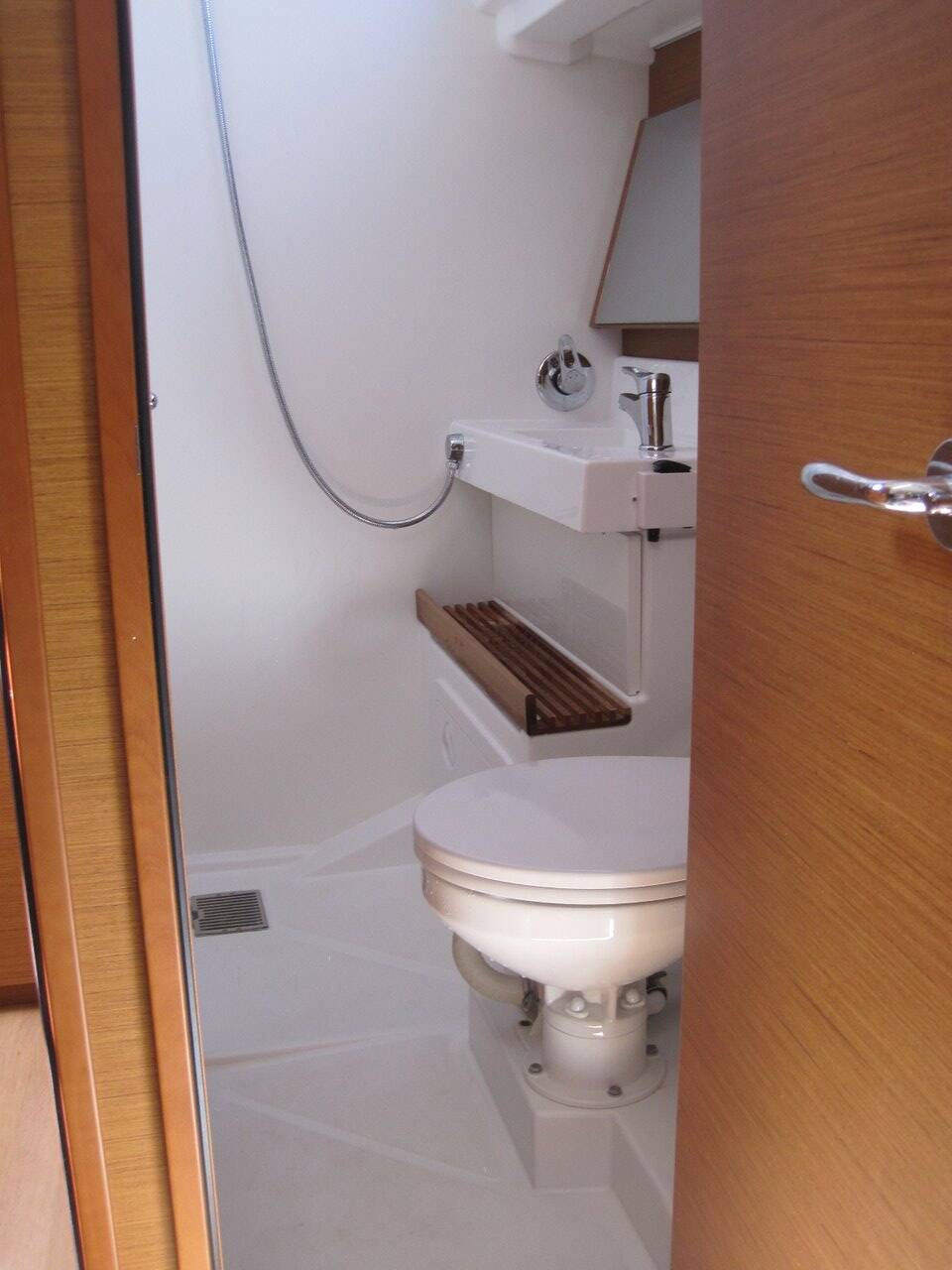 Retractable bow thruster, Sea water tap in the kitchen, Drawer refrigerator in the salon, Top-loading freezer in the salon, Fans in the cabins and salon, Electric wc